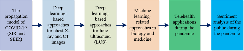 The COVID-19 has resulted in catastrophic situation and the deaths of millions of people all over the world. In this paper, the predictions of epidemiological propagation models, such as SIR and SEIR, are introduced to analyze the earlier COVID-19 propagation. The deep learning methods combined with transfer learning are familiar with classification-detection approaches based on chest X-ray and CT images are presented in detail. Besides, deep learning approaches have also been applied to lung ultrasound (LUS), which has been shown to be more sensitive than chest X-ray and CT images in detecting COVID-19. In the absence of a vaccine, the machine learning-related approaches are applied to analyze vaccine candidates in the realm of biology and medicine. The telehealth system played a major role in combating the pandemic from all aspects and reducing contact with patients during this period. Natural language processing-related methods are utilized to analyze tweets related to the COVID-19 epidemic on social media, and further analyze public sentiment and subject modeling, so as to arrange corresponding measures to appease public sentiment. In particular, this survey is to summarize and analyze the contributions made in various fields during the COVID-19 pandemic by considering both the contribution of deep learning in chest X-ray and CT images, as well as the application of the latest LUS during the COVID-19 pandemic. Telehealth and the importance of public sentiment analysis during a pandemic were also described in detail.Graphic Abstract