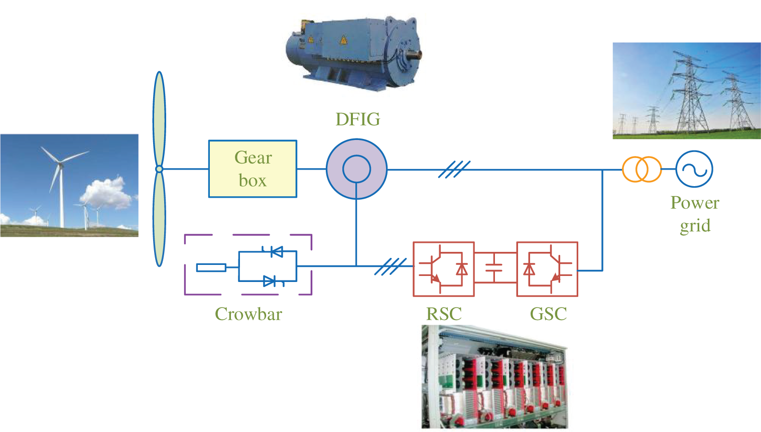 Rotor side of DFIG is connected to grid through a converter, and stator side is directly connected to grid as shown in Fig. 1.