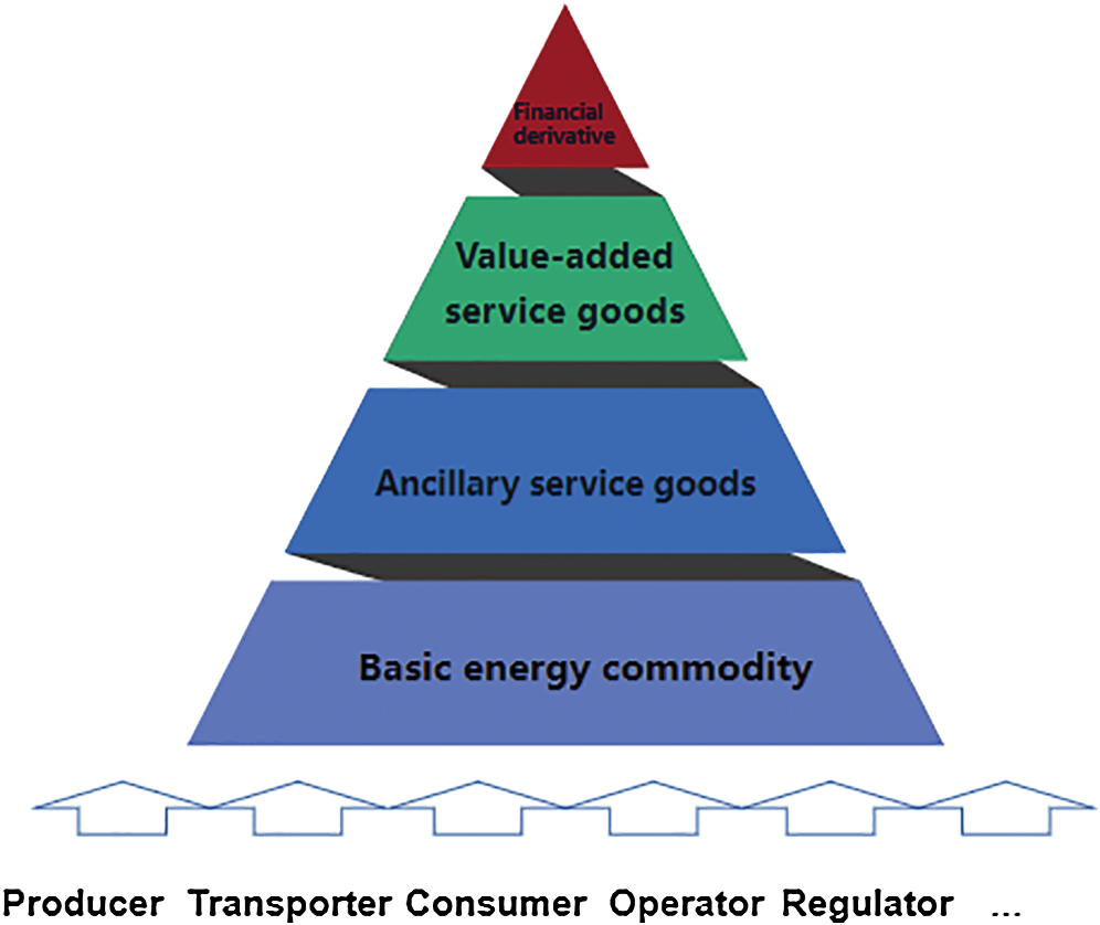 The diversification of market subject in the energy Internet system market has gradually led to the varied object. With the increase of energy users in the energy Internet system and the increased awareness of market participation, energy conservation and environmental protection, users are no longer limited to energy consumption, but new demands have emerged. The energy Internet system market provides a free platform for users’ energy demand, and produces new business models and new formats. Through the market mechanism of competition and complementarity, the symbiosis of various elements of energy Internet system is realized. As shown in Fig. 1, equipment, energy, services and other derivatives in the energy Internet system market can be freely traded [17]. Energy Internet system products can be divided into basic energy commodity, auxiliary service goods, value-added services goods and financial derivative.