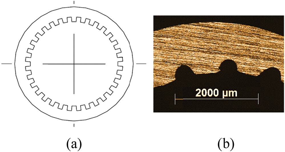 Figure 3: Axial microgrooves capillary structure. (a) schematically view, (b) micrograph
