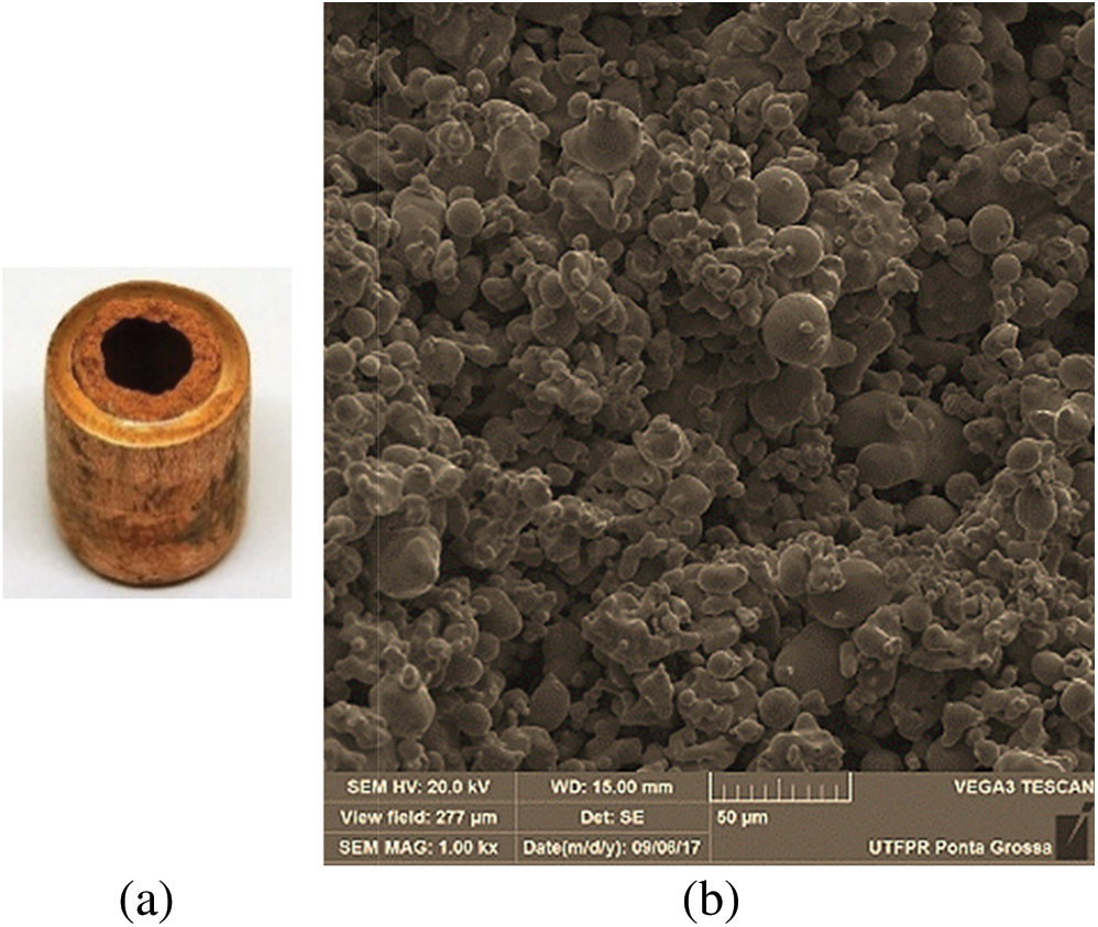 A monomodal copper powder and a temporary mandrel were used in a sintering process, which produced the sintered heat pipe—Fig. 4a. The volume-based average particle diameter of the powder is 33 μm and the wick thickness is 1.5 mm. The apparatus used in the sintering process consisted of a controlled atmosphere horizontal tubular furnace (Inti™ FT-1200), a data acquisition system (Agilent™ 34970A with 20 channels), and a laptop (Dell™). The gas used in the atmosphere control was a mixture of 95% of Argon and 5% of Hydrogen. The sintering occurred at a heating rate of 20°C/min, with a 15-minute permanency at a temperature of 800°C, and subsequent cooling by air forced convection. The wick porosity was obtained by Helium Pycnometry associated with physical characterization by the Archimedes method, showing that the total porosity of the capillary structure is 54.8%. Fig. 4b presents a micrograph of the sintered powder capillary structure obtained by Backscattered Electron Detector (BSD) for SEM. Additional characteristics of sintered heat pipes are in [40].